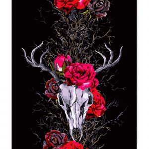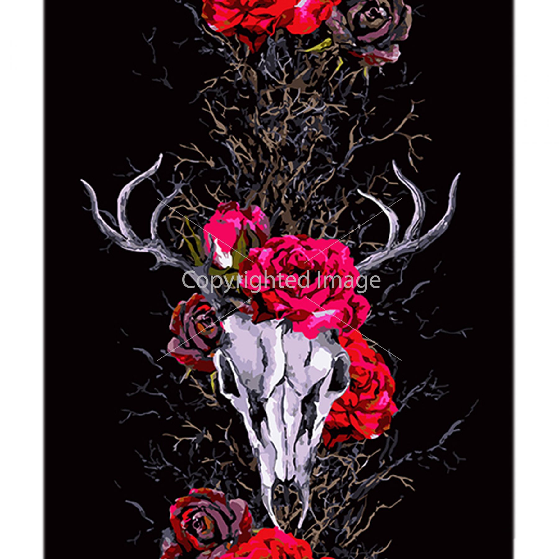 Картина за номерами Strateg ПРЕМІУМ Череп оленя з трояндами на чорному фоні розміром 40х50 см (AH1097)