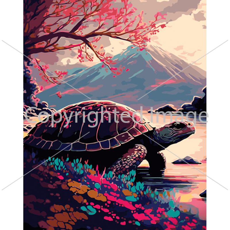 Картина за номерами Strateg ПРЕМІУМ Черепаха біля гори розміром 40х50 см (GS914)
