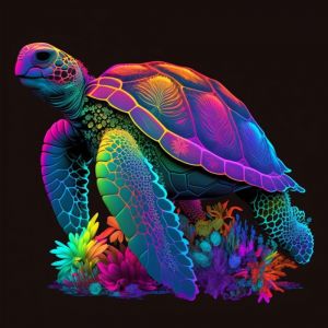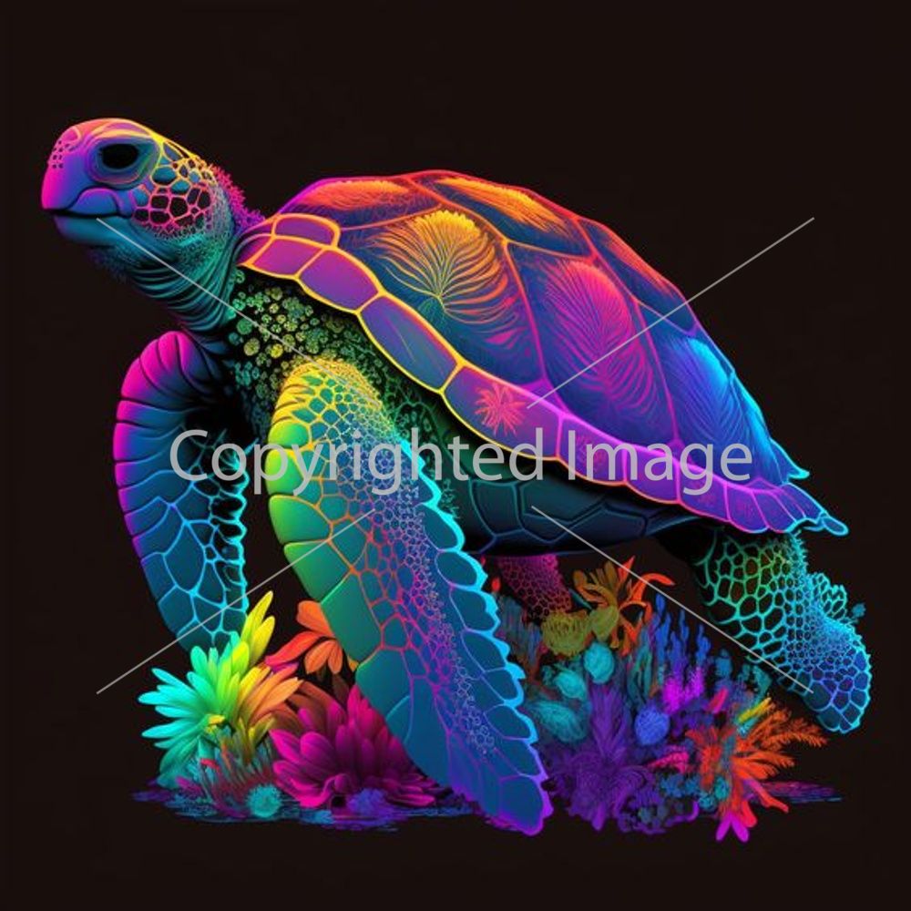 Картина за номерами Strateg ПРЕМІУМ Черепаха у неонових тонах на чорному фоні розміром 40х40 см (AV4040-9)
