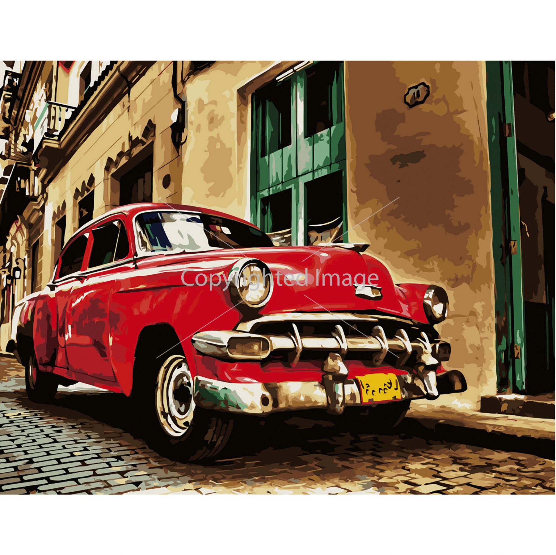 Картина за номерами Strateg ПРЕМІУМ Червона ретро машина з лаком розміром 40х50 см VA-2741