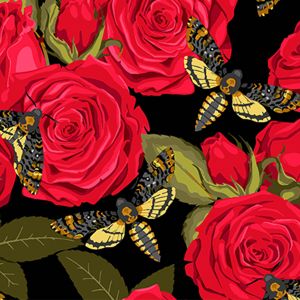 Картина за номерами Strateg ПРЕМІУМ Червоні троянди з метеликами на чорному фоні розміром 40х40 см (AV4040-83)