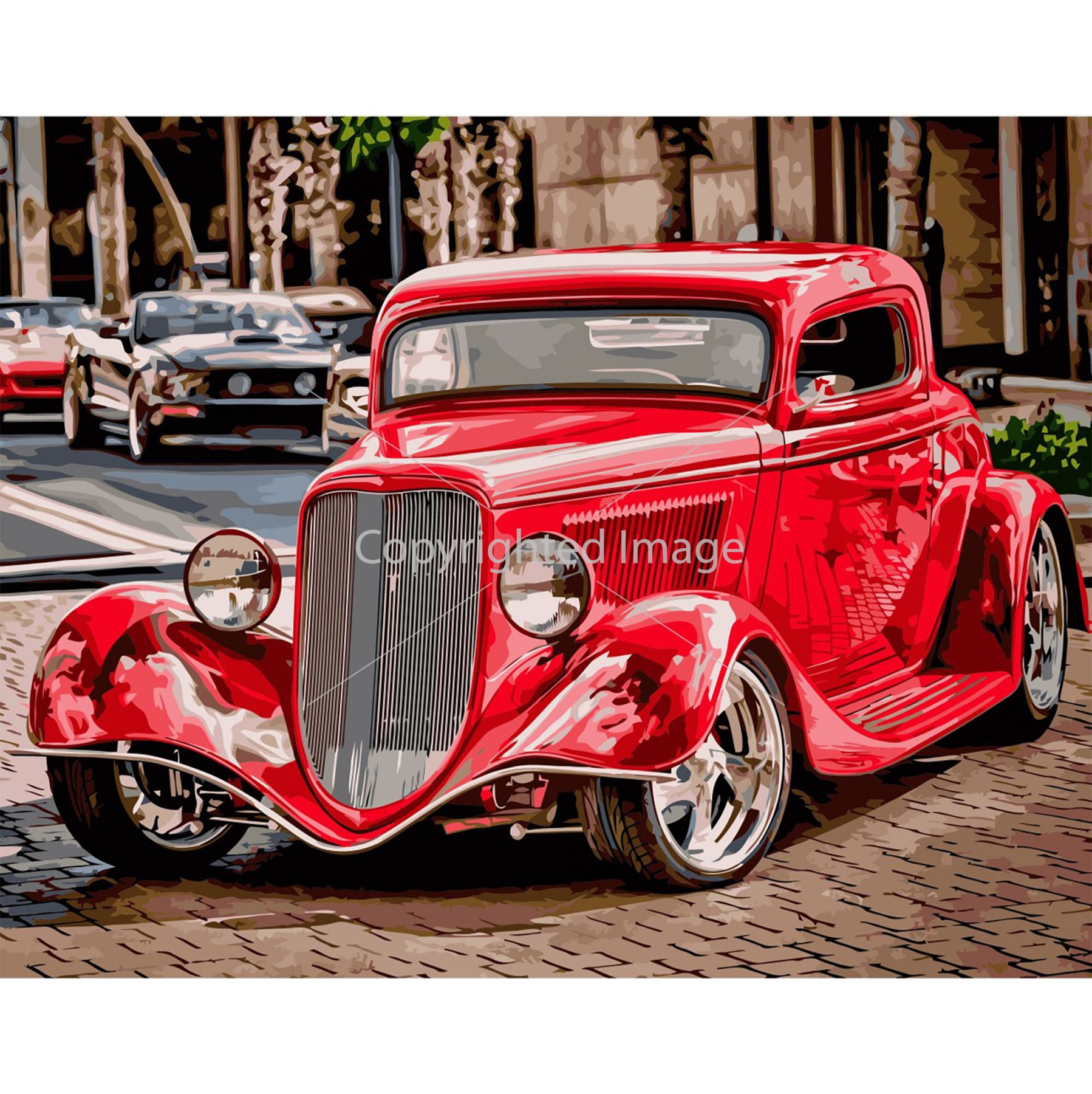Картина за номерами Strateg ПРЕМІУМ Червоний ретро автомобіль з лаком розміром 40х50 см VA-2505