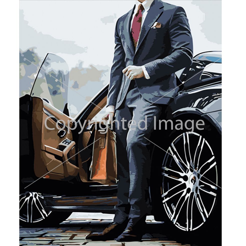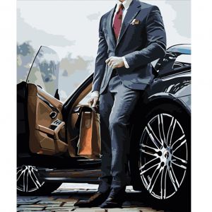 Картина за номерами Strateg ПРЕМІУМ Чоловік біля машини розміром 40х50 см (HH075)