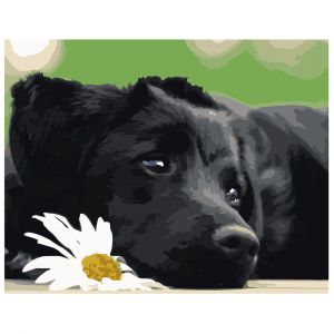 Картина за номерами Strateg ПРЕМІУМ Чорне щеня з лаком розміром 40х50 см VA-0518