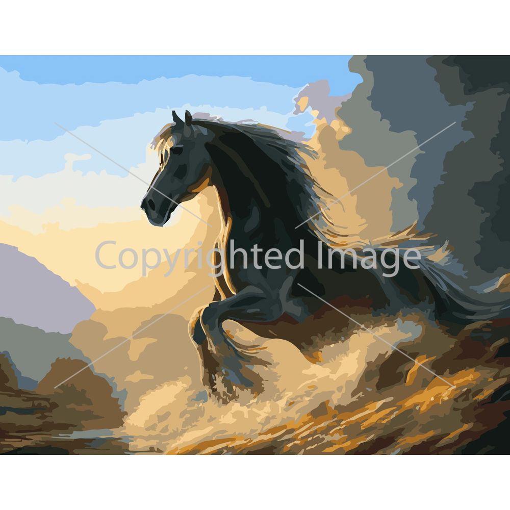 Картина за номерами Strateg ПРЕМІУМ Чорний кінь розміром 40х50 см (GS308)