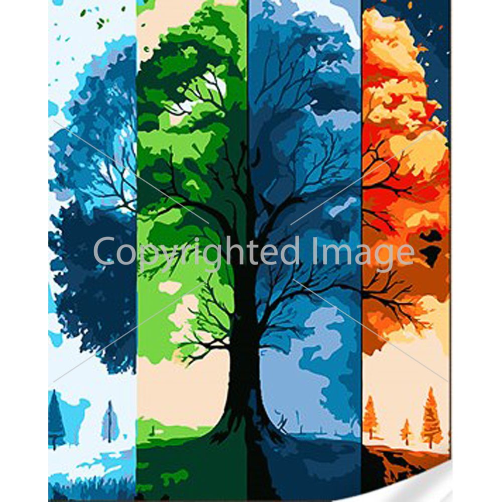 Картина за номерами Strateg ПРЕМІУМ Чотири сезони з лаком та з рівнем розміром 30х40 см (SS1019)