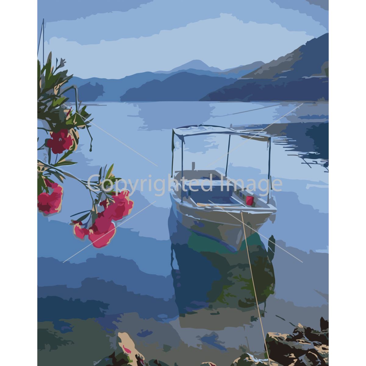 Картина за номерами Strateg ПРЕМІУМ Човник з лаком розміром 40х50 см (SY6752)