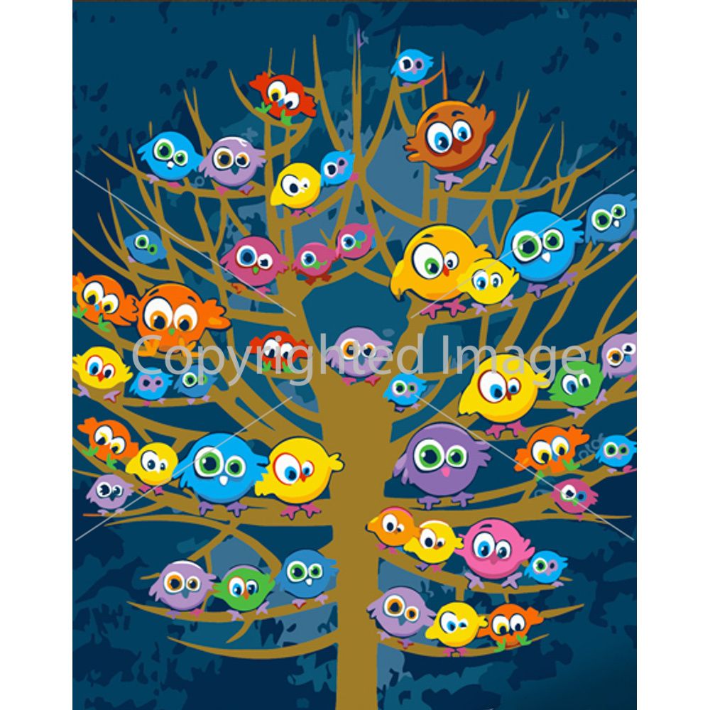 Картина за номерами Strateg ПРЕМІУМ Дерево з пташками з лаком розміром 30х40 см (SS6684)