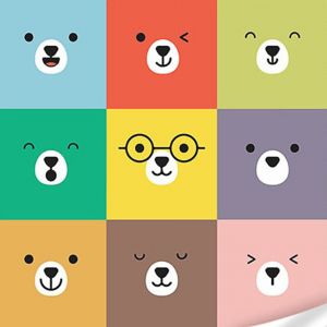 Картина за номерами Strateg ПРЕМІУМ Дев'ять ведмедиків з лаком та з рівнем розміром 30х30 см (ES-0882)