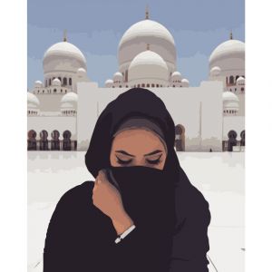 Картина за номерами Strateg ПРЕМІУМ Дівчина біля Мечеті розміром 40х50 см (GS216)