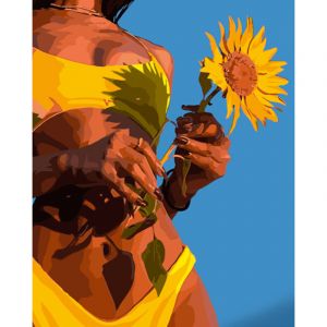Картина за номерами Strateg ПРЕМІУМ Дівчина із соняшником розміром 40х50 см (GS716)