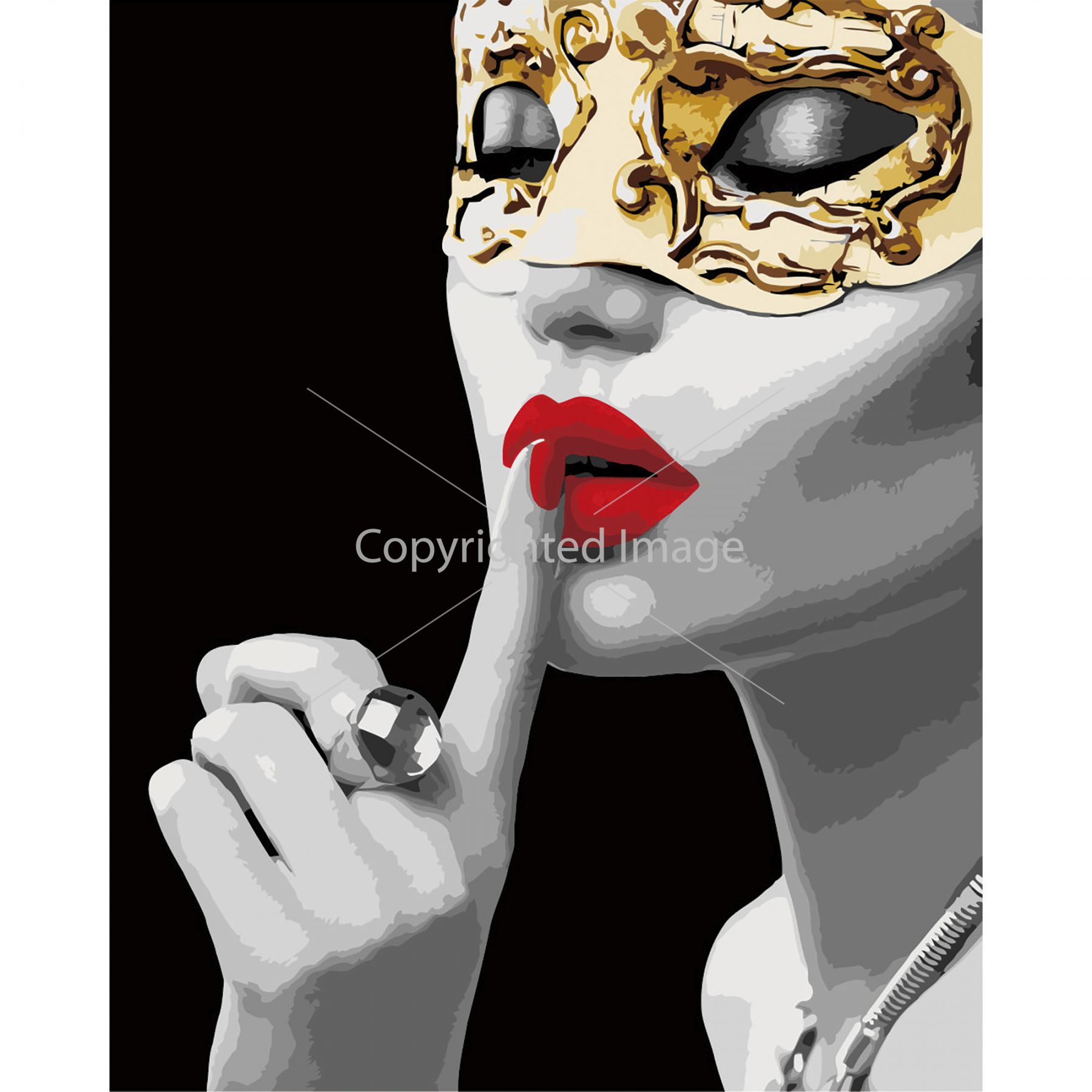 Картина за номерами Strateg ПРЕМІУМ Дівчина із золотою маскою з лаком розміром 40х50 см VA-2551