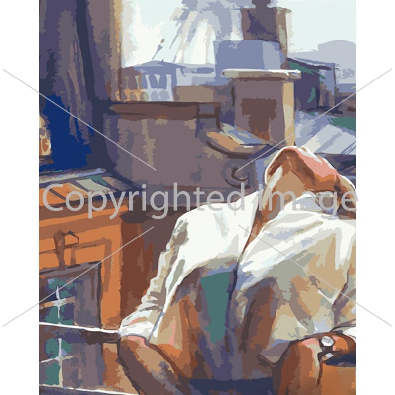 Картина за номерами Strateg ПРЕМІУМ Дівчина на балконі розміром 40х50 см (GS674)