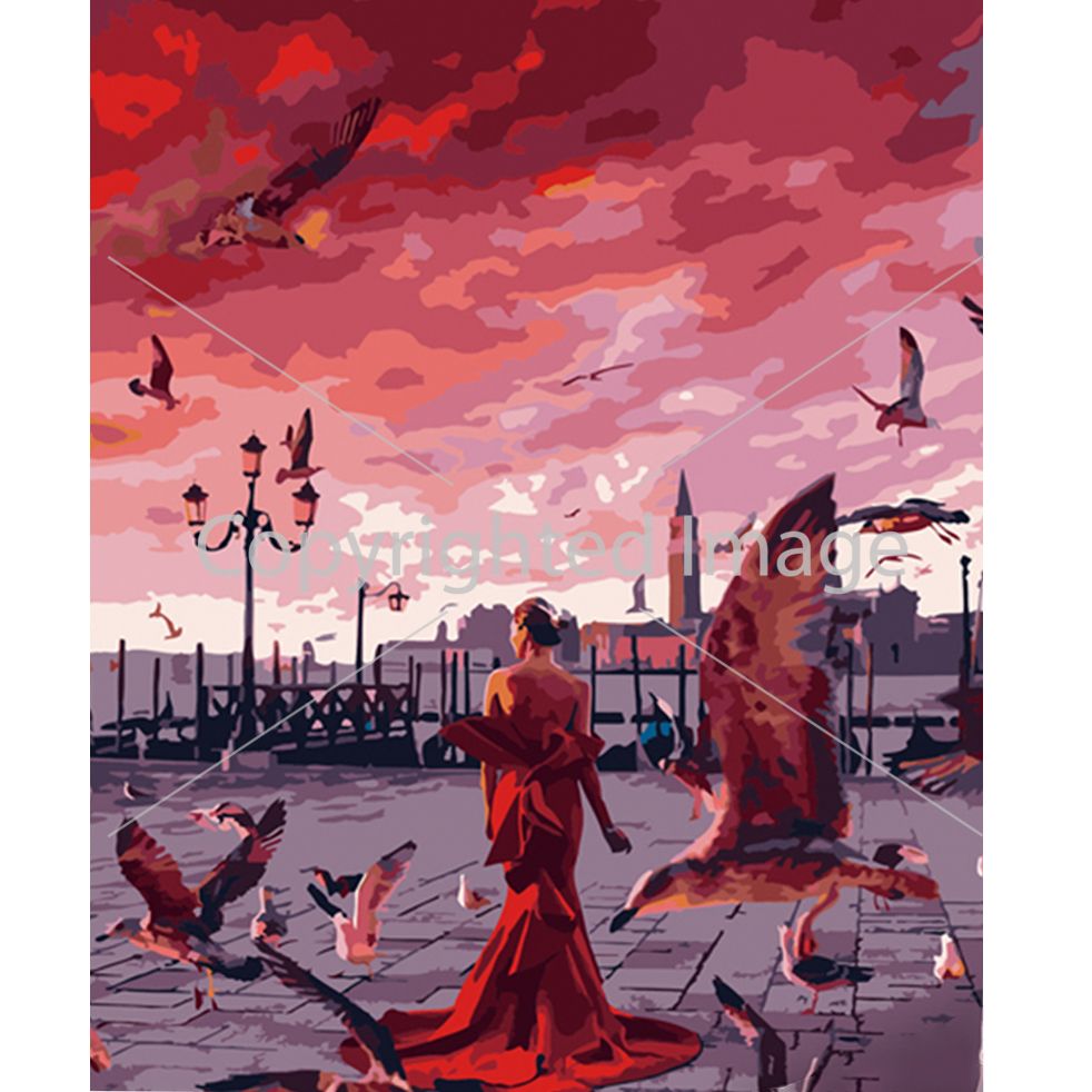 Картина за номерами Strateg ПРЕМІУМ Дівчина серед чайок розміром 40х50 см (HH017)