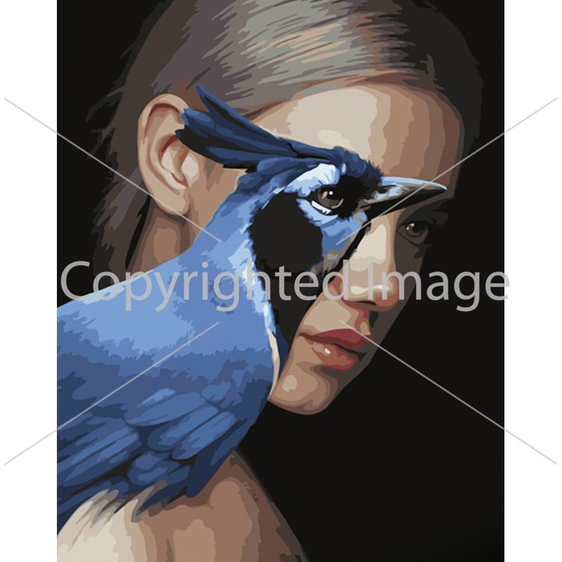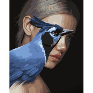 Картина за номерами Strateg ПРЕМІУМ Дівчина та синій птах з лаком розміром 40х50 см (GS1264)