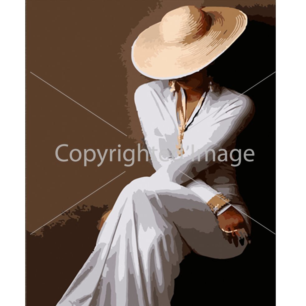 Картина за номерами Strateg ПРЕМІУМ Дівчина у капелюсі розміром 40х50 см (HH036)