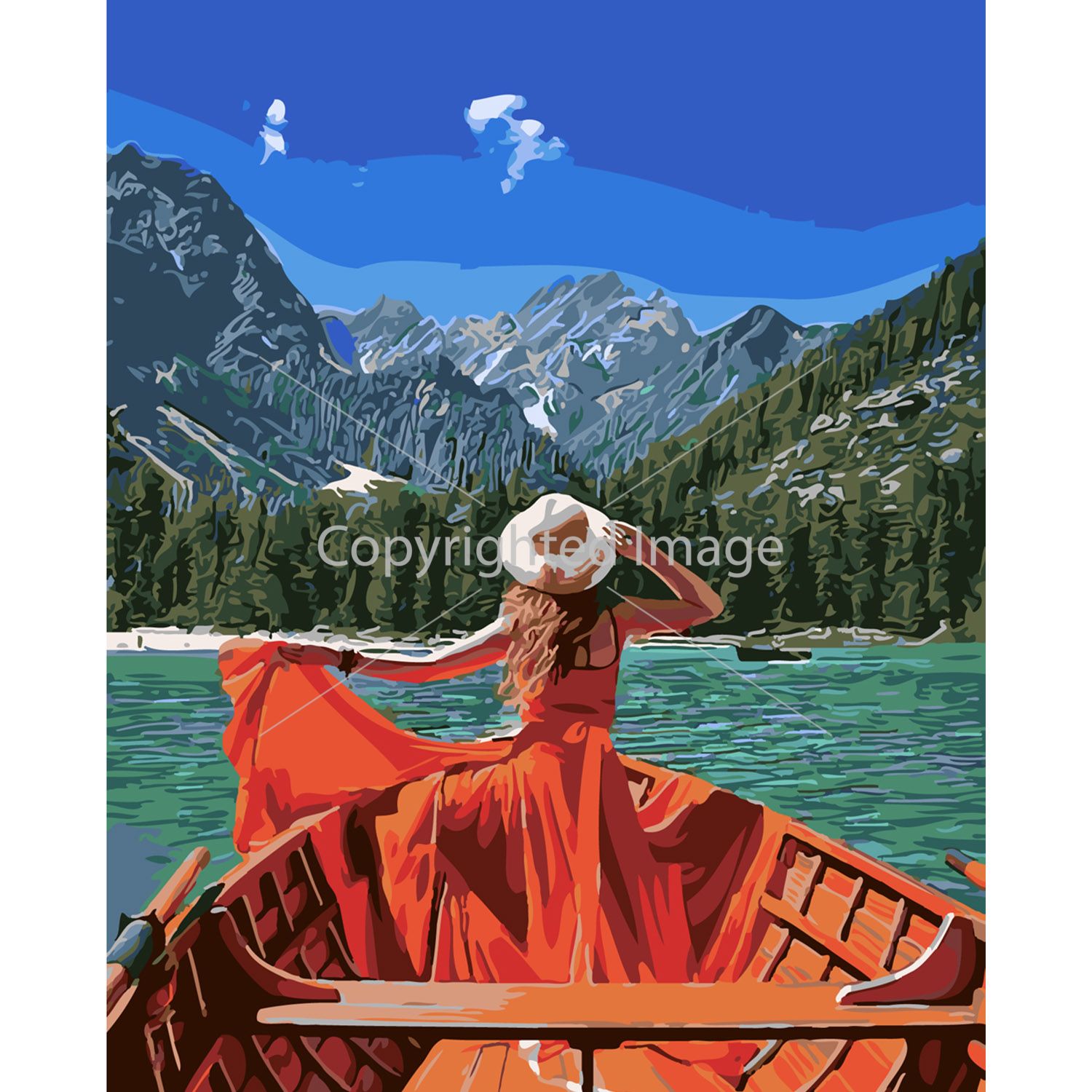 Картина за номерами Strateg ПРЕМІУМ Дівчина в червоному з лаком розміром 40х50 см SY6258
