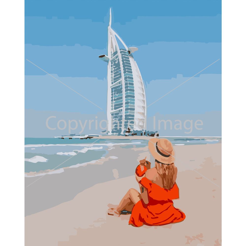 Картина за номерами Strateg ПРЕМІУМ Дівчина в Дубаї розміром 40х50 см (GS204)