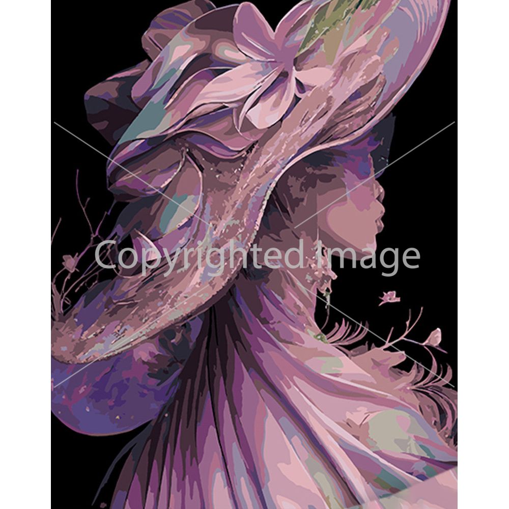 Картина за номерами Strateg ПРЕМІУМ Дівчина в капелюсі на чорному фоні розміром 40х50 см (AH1054)