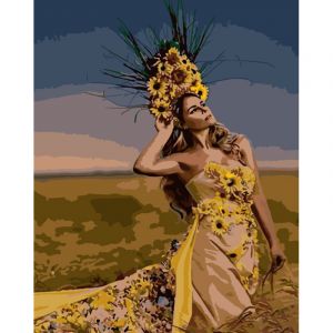 Картина за номерами Strateg ПРЕМІУМ Дівчина в соняшниках розміром 40х50 см (GS873)