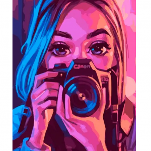 Картина за номерами Strateg ПРЕМІУМ Дівчина з фотоапаратом розміром 40х50 см (DY300)