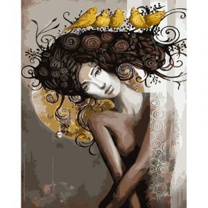 Картина за номерами Strateg ПРЕМІУМ Дівчина з птахами з лаком розміром 40х50 см (GS1089)
