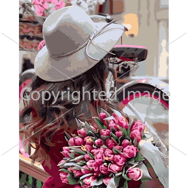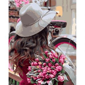 Картина за номерами Strateg ПРЕМІУМ Дівчина з тюльпанами розміром 40х50 см (GS961)