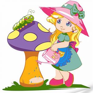 Картина за номерами Strateg ПРЕМІУМ Дівчинка з грибочком з лаком та з рівнем розміром 30х30 см (ES-0880)