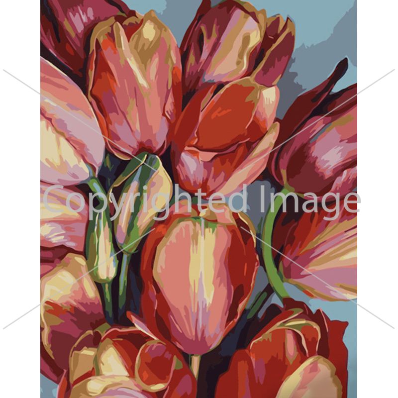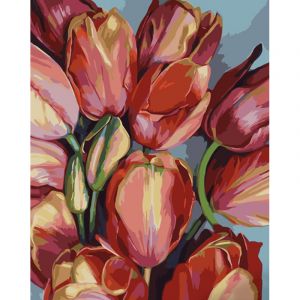 Картина за номерами Strateg ПРЕМІУМ Дивовижні тюльпани з лаком та з рівнем розміром 40х50 см (GS1396)