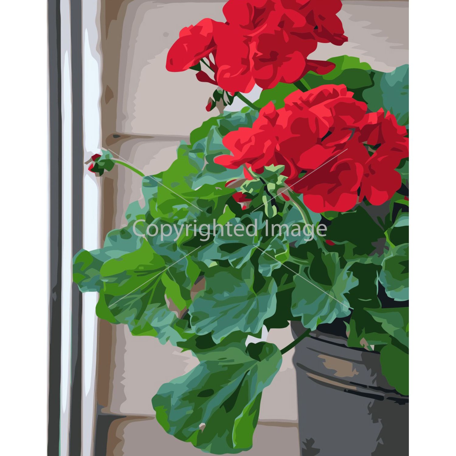 Картина за номерами Strateg ПРЕМІУМ Домашня герань з лаком розміром 40х50 см VA-3326