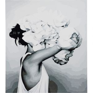 Картина за номерами Strateg ПРЕМІУМ Думки-квіти в ч/б з лаком розміром 30х40 см (SS6616)
