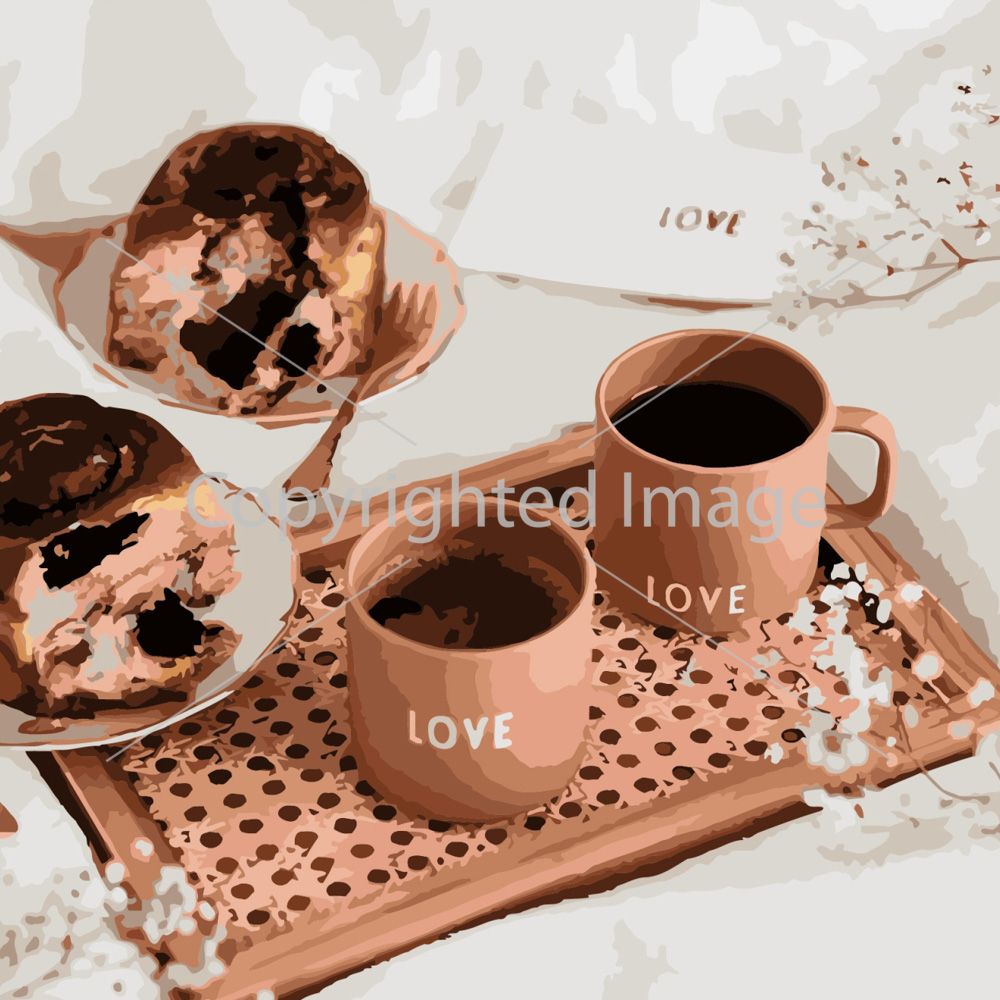 Картина за номерами Strateg ПРЕМІУМ Два горнятка кави розміром 40х40 см (SK048)