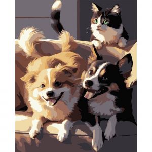 Картина за номерами Strateg ПРЕМІУМ Дві собаки і кіт на чорному фоні розміром 40х50 см (AH1190-17)Картини за номерами від українського виробника Strateg поєднують творчість з грою. Вони розвивають фантазію, покращують пам'ять і дрібну моторику. А процес малювання знижує тривогу і знімає стрес.