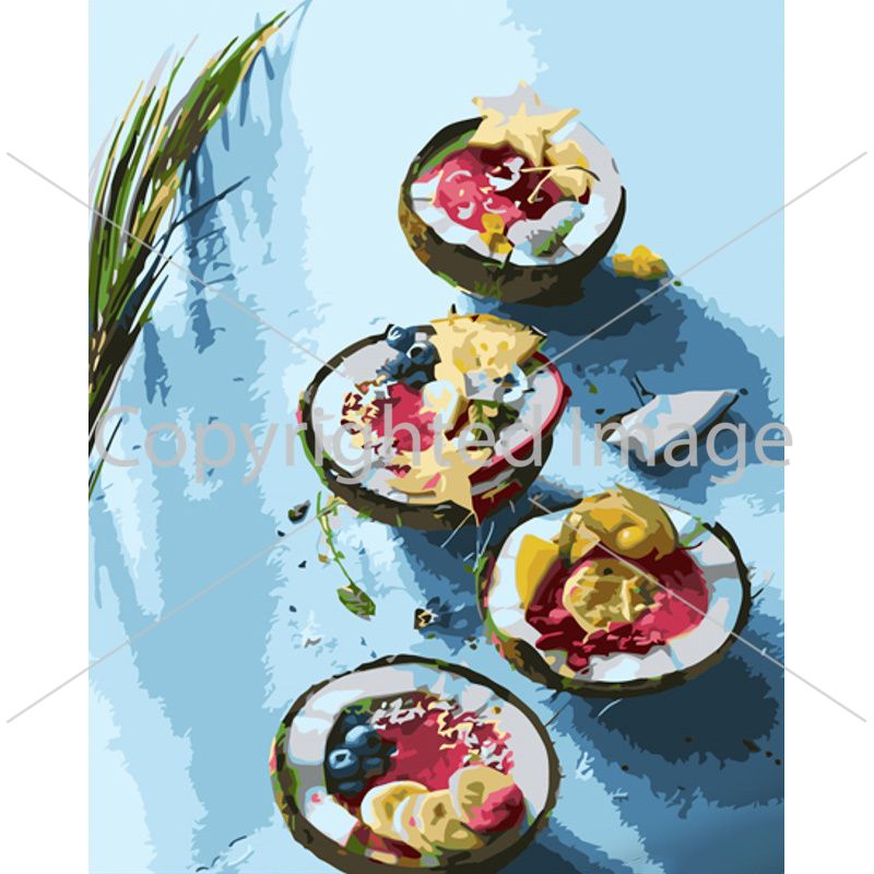 Картина за номерами Strateg ПРЕМІУМ Екзотичний десерт з лаком розміром 40х50 см (GS1316)