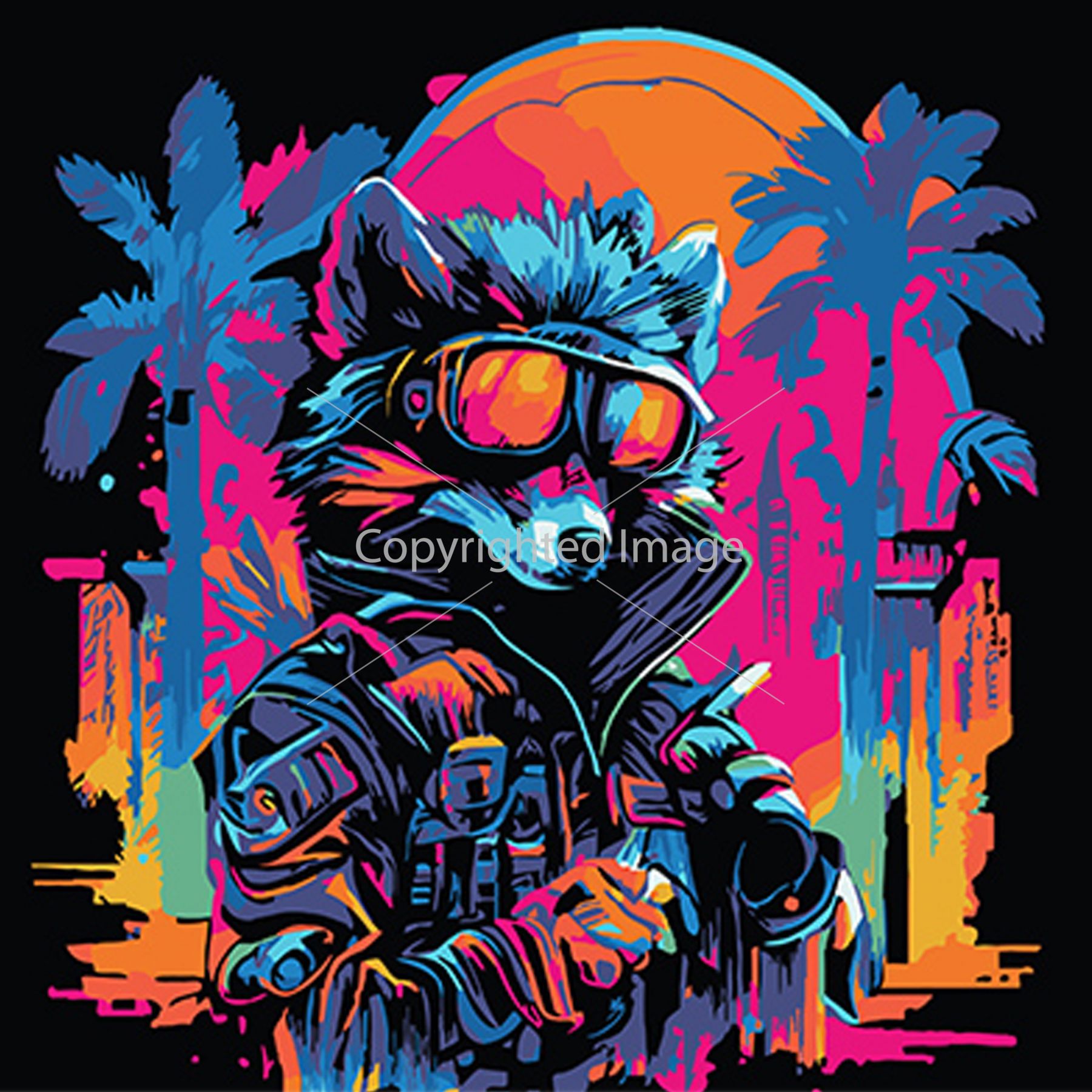 Картина за номерами Strateg ПРЕМІУМ Єнот у модних окулярах на чорному фоні розміром 40х40 см (AV4040-58)