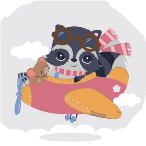 Картина за номерами Strateg ПРЕМІУМ Єнотик на літакуз лаком розміром 30х30 см ES051