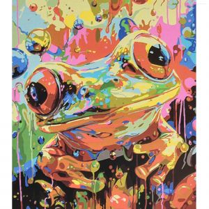 Картина за номерами Strateg ПРЕМІУМ Феєрія фарб і жабеня з лаком та рівнем розміром 40х50 см (VA-4654)