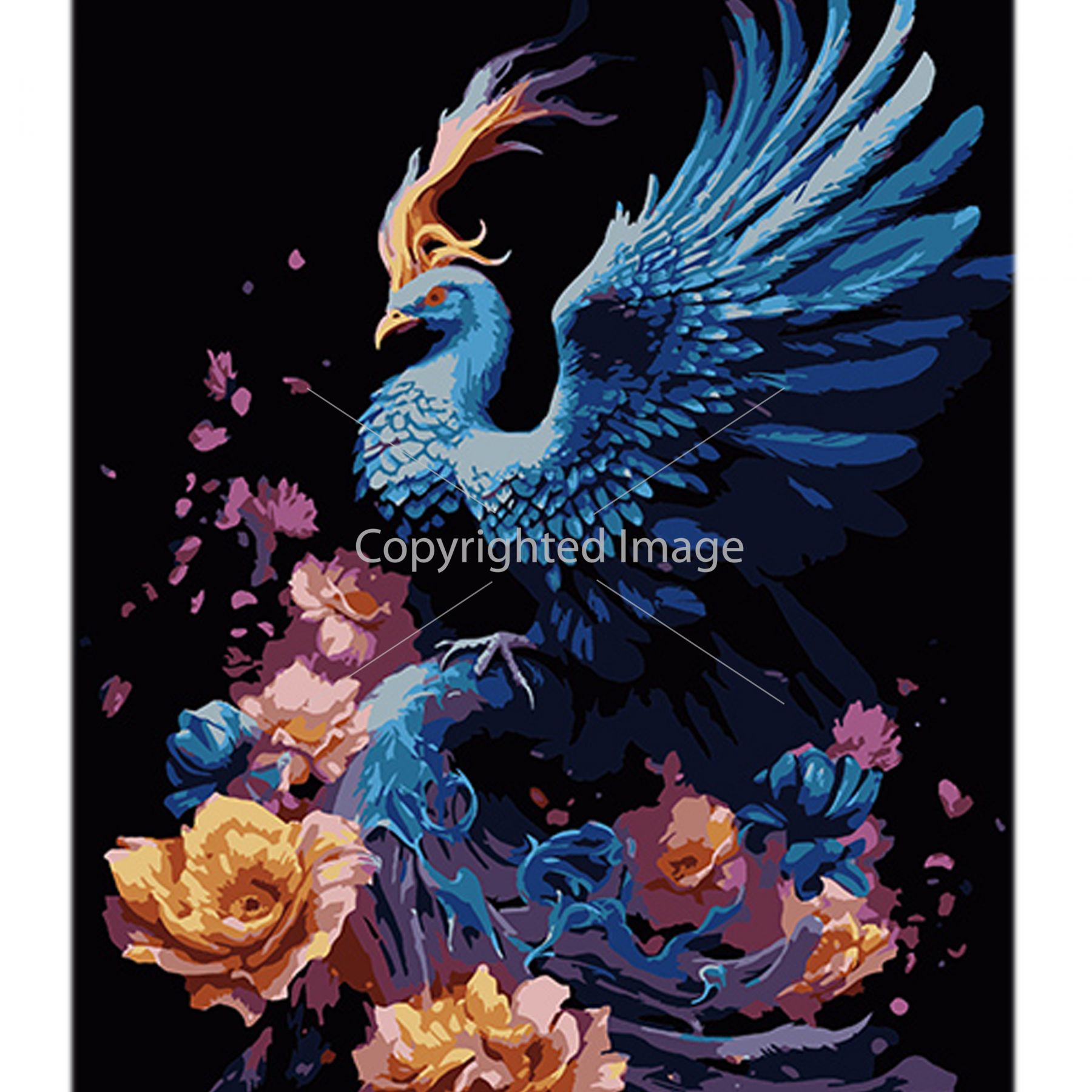 Картина за номерами Strateg ПРЕМІУМ Фенікс в квітковому полум'ї на чорному фоні розміром 40х50 см (AH1121)
