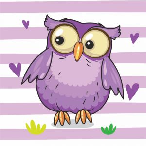 Картина за номерами Strateg ПРЕМІУМ Фіолетова сова з лаком та з рівнем розміром 30х30 см (ES-0819)