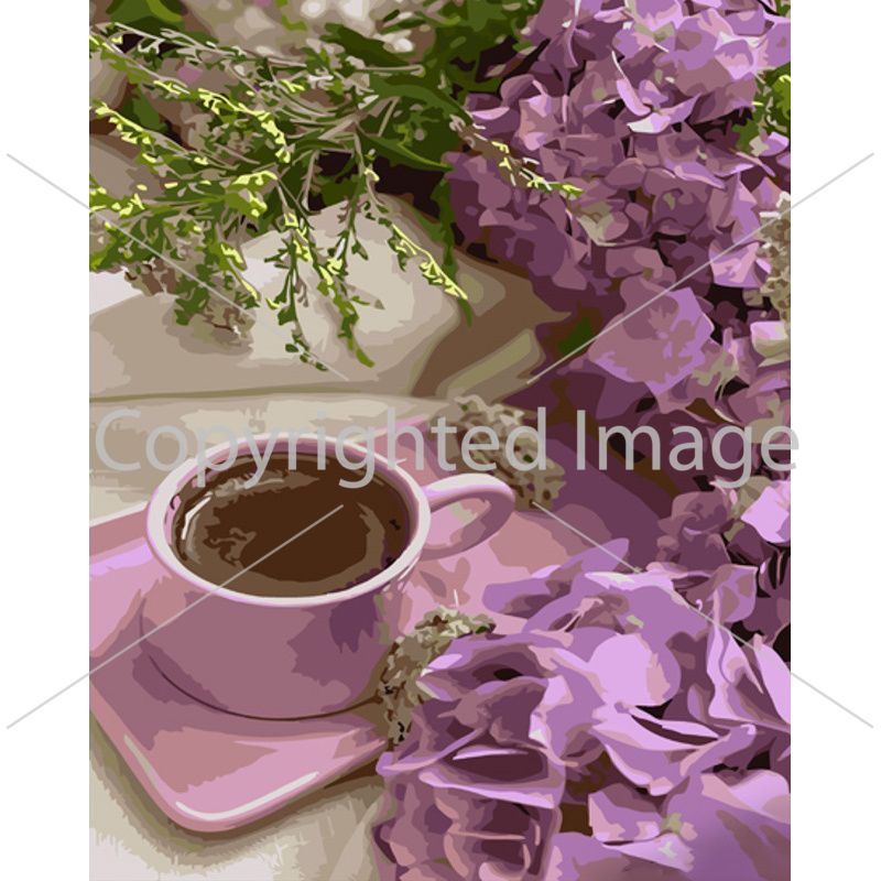 Картина за номерами Strateg ПРЕМІУМ Фіолетові гортензії з кавою розміром 40х50 см (GS1035)