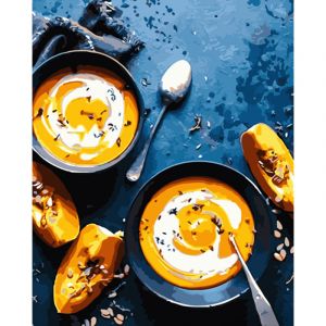 Картина за номерами Strateg ПРЕМІУМ Гарбузовий суп розміром 40х50 см (GS604)