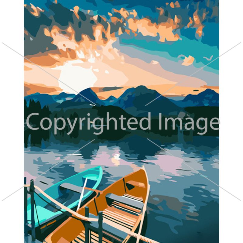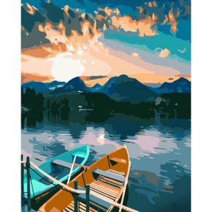 Картина за номерами Strateg ПРЕМІУМ Гавань з човнами розміром 40х50 см (GS697)