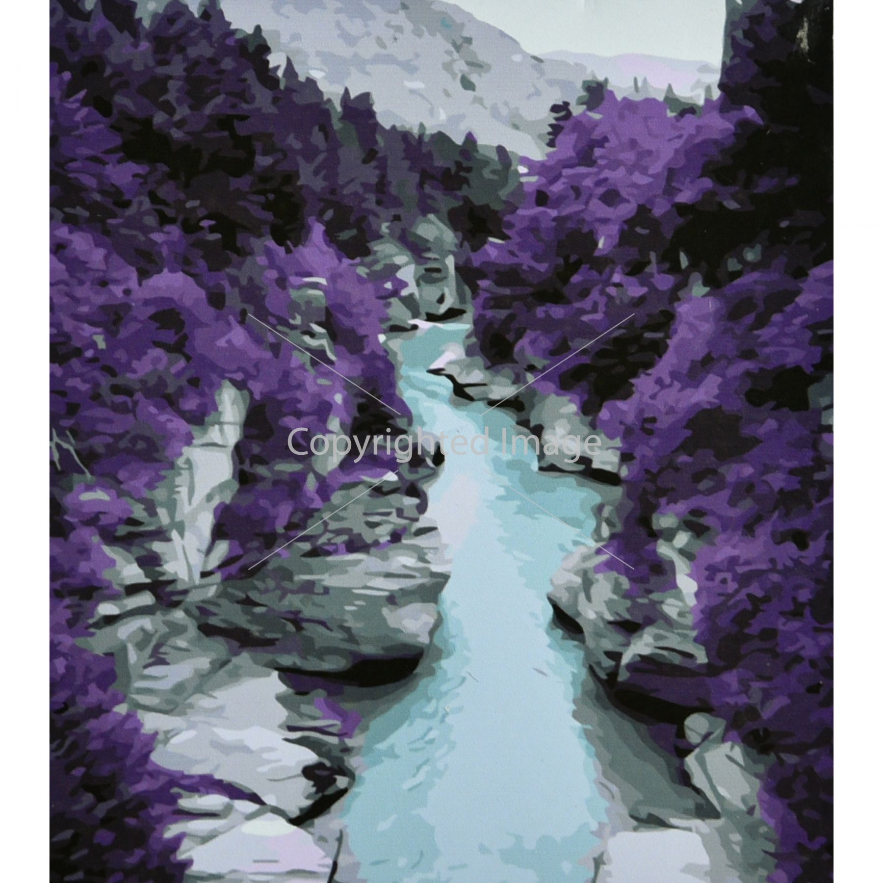 Картина за номерами Strateg ПРЕМІУМ Гірська річка з лаком та з рівнем розміром 30х40 см (SS6602)