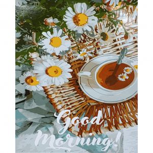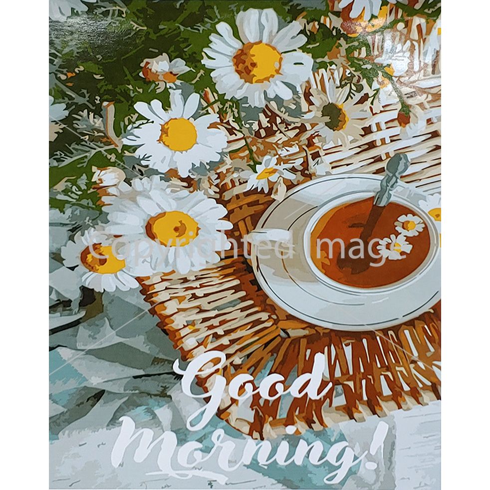 Картина за номерами Strateg ПРЕМІУМ Good Morning з ромашками з лаком розміром 40х50 см (SY6868)