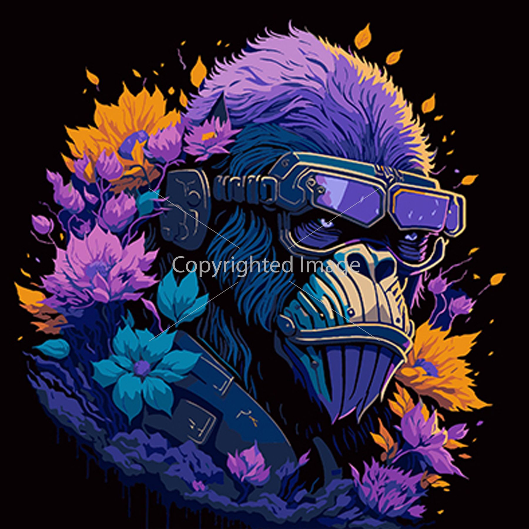 Картина за номерами Strateg ПРЕМІУМ Горила в окулярах і квітковій красі на чорному фоні розміром 40х40 см (AV4040-38)
