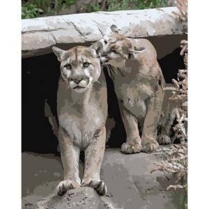 Картина за номерами Strateg ПРЕМІУМ Грайливі пуми розміром 40х50 см (DY122)