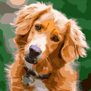 Картина за номерами Strateg ПРЕМІУМ Грайливий пес розміром 40х40 см (SK010)