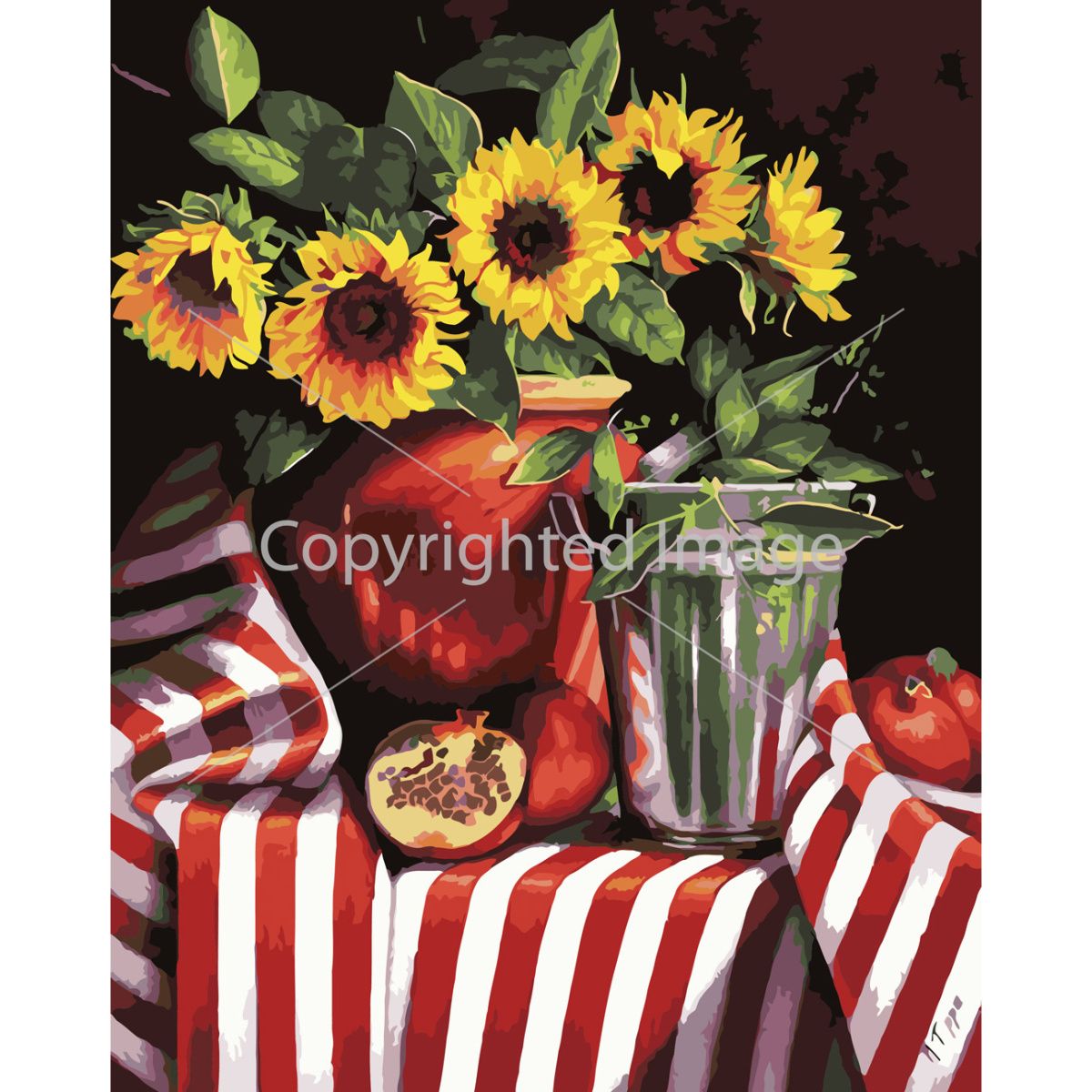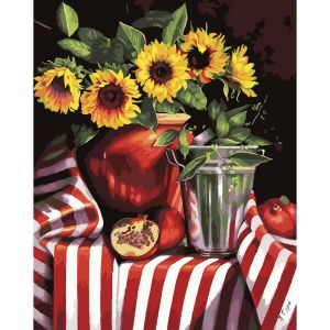 Картина за номерами Strateg ПРЕМІУМ Гранат та соняшники з лаком розміром 40х50 см (SY6673)