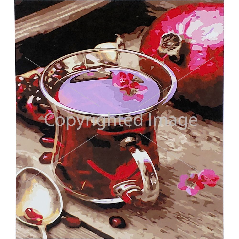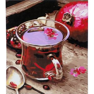 Картина за номерами Strateg ПРЕМІУМ Гранатовий чай з лаком розміром 30х40 см (SS6634)
