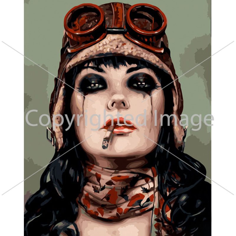 Картина за номерами Strateg ПРЕМІУМ Груба льотчиця з лаком розміром 40х50 см (GS1174)